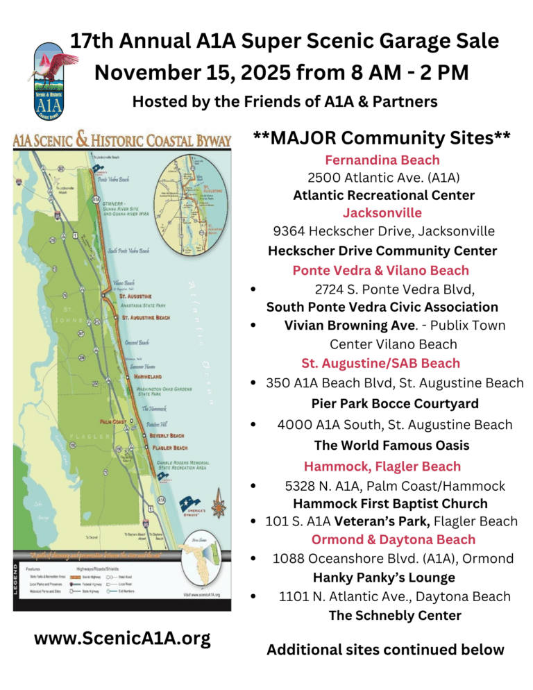 Friends of A1A Release 2025 A1A Super Scenic 150 Mile Garage Sale Map