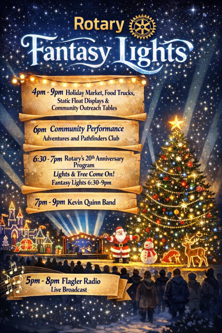 Palm Coast – The City of Palm Coast invites residents and visitors to Central Park in Town Center on Saturday, December 20, for a special 20th Anniversary Celebration of the Fantasy Lights…