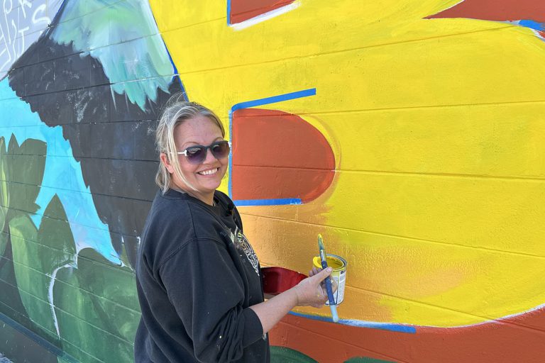 1,100-square-foot mural on former library building marks first of 22 installations aimed at boosting tourism and community pride