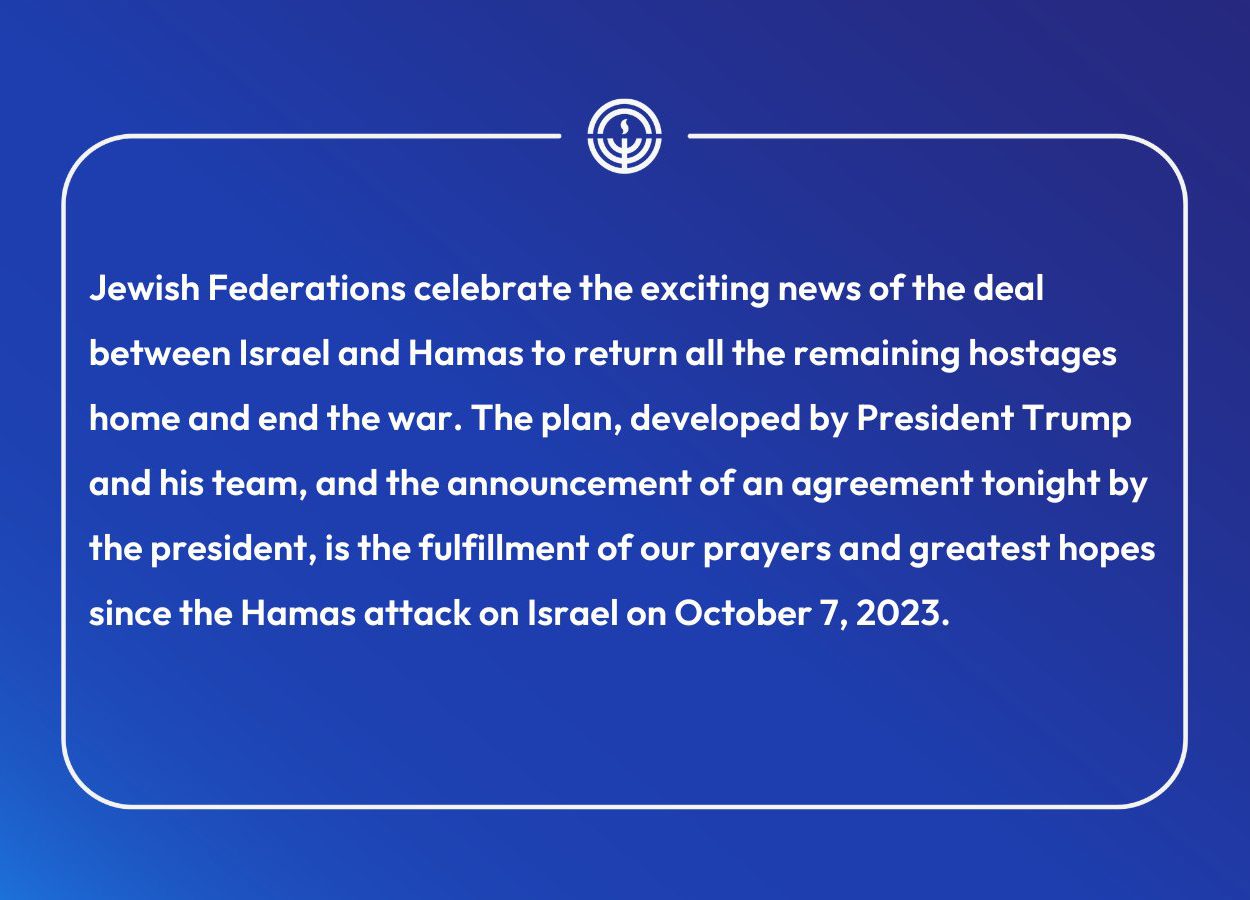 The Jewish Federation of Volusia and Flagler Counties Release Update on Historic Peace Deal