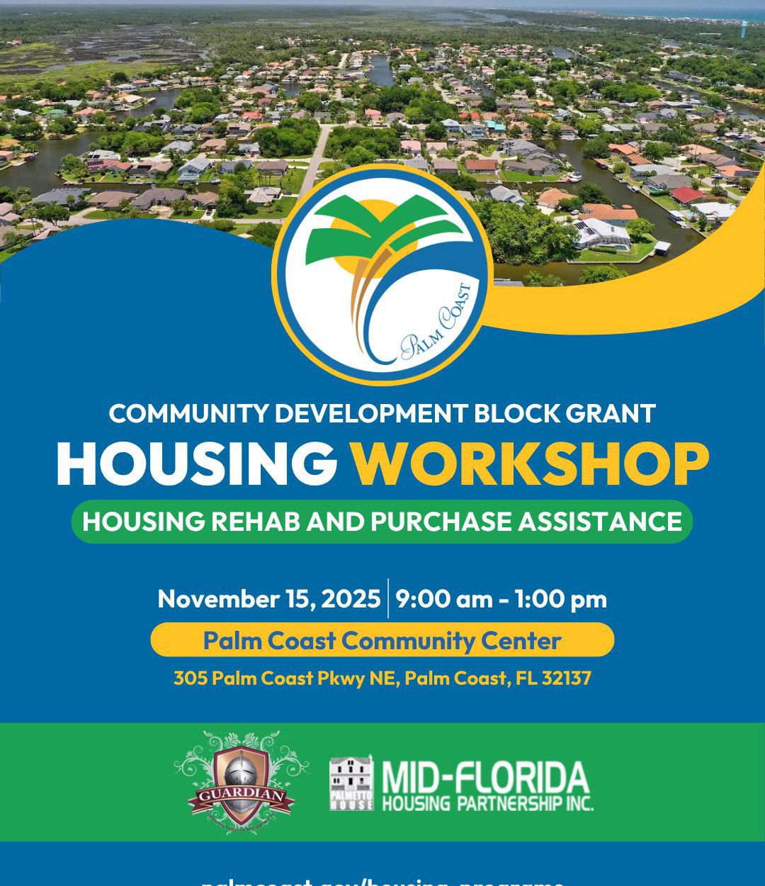 Posted in Flagler News Weekly Housing Workshop Set for November 15 in Palm Coast November 9, 2025 Join the City of Palm Coast for the Community Development Block Grant Housing Workshop this Saturday, November 15, 2025. Discover how you might qualify for housing rehab and purchase assistance […]