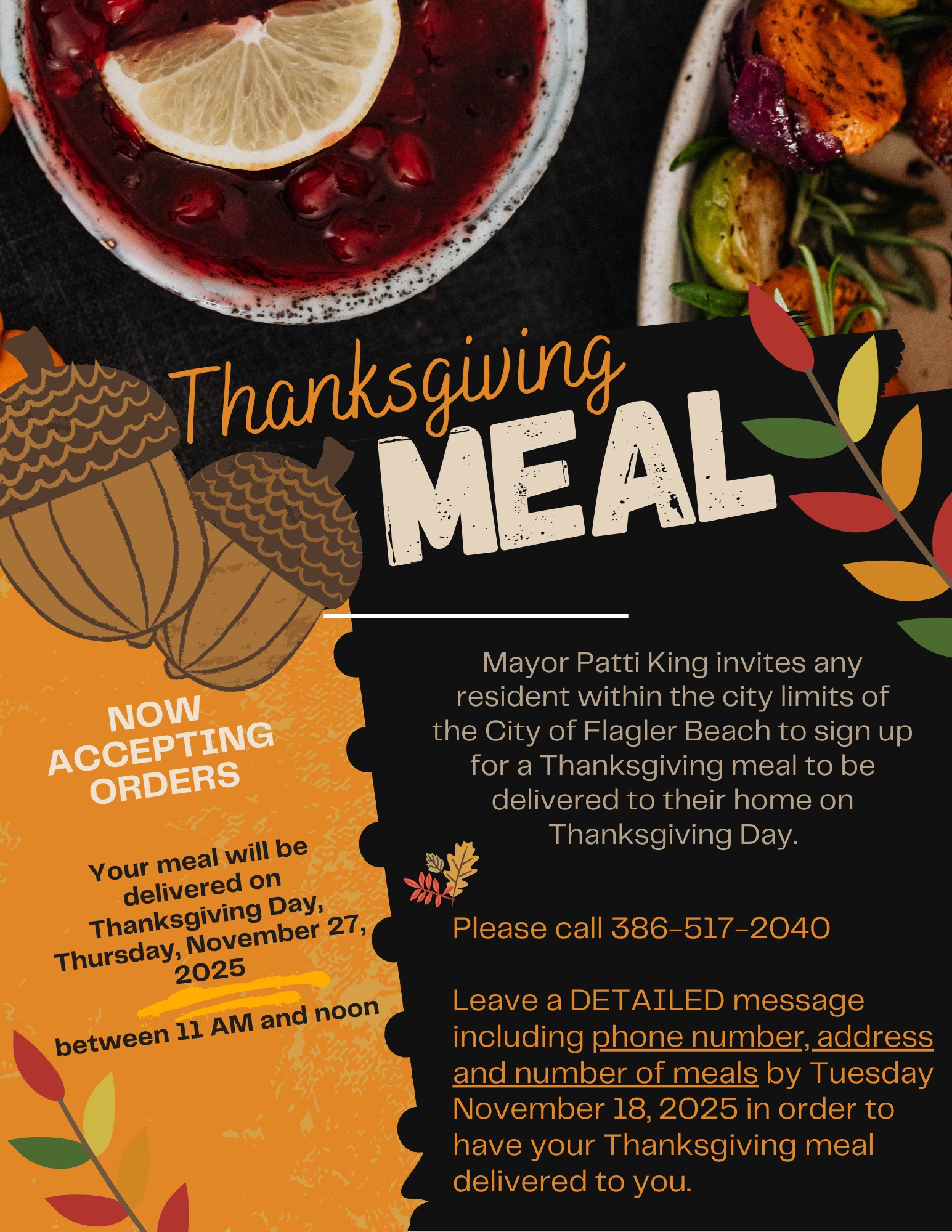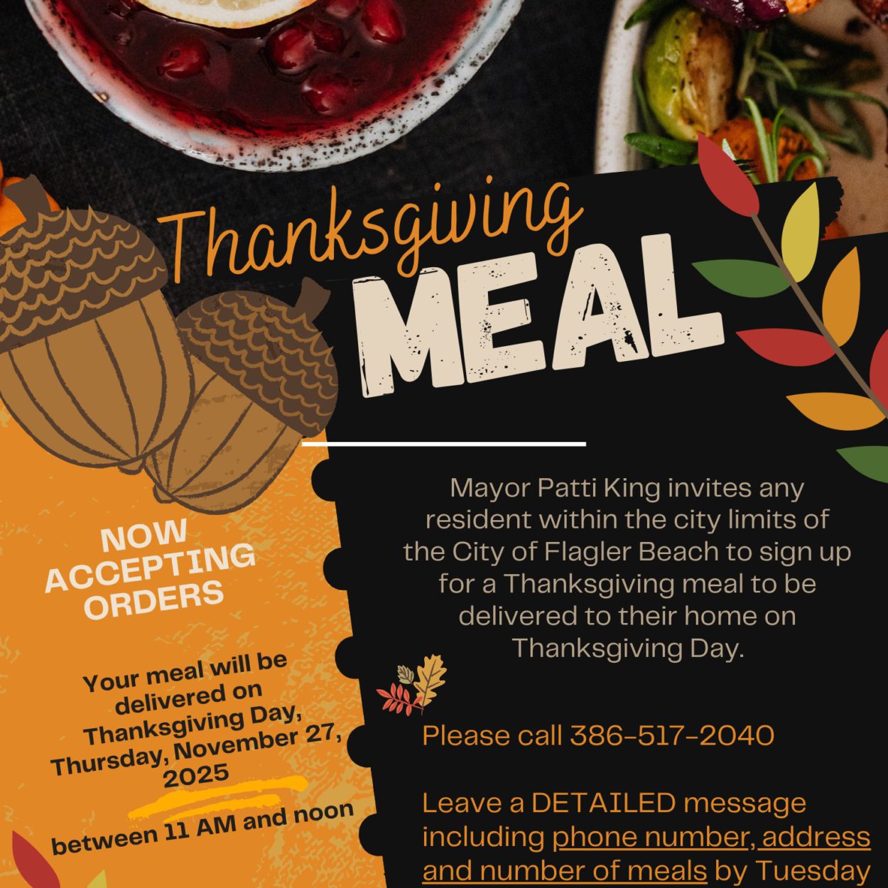 Posted in Flagler News Weekly Neighbors Helping Neighbors: A Warm Thanksgiving Meal for Every Neighbor November 12, 2025 Flagler Beach, Fla. – Flagler Beach Mayor Patti King is making sure no one goes without a meal this Thanksgiving. Any resident living within the city limits is invited to […]