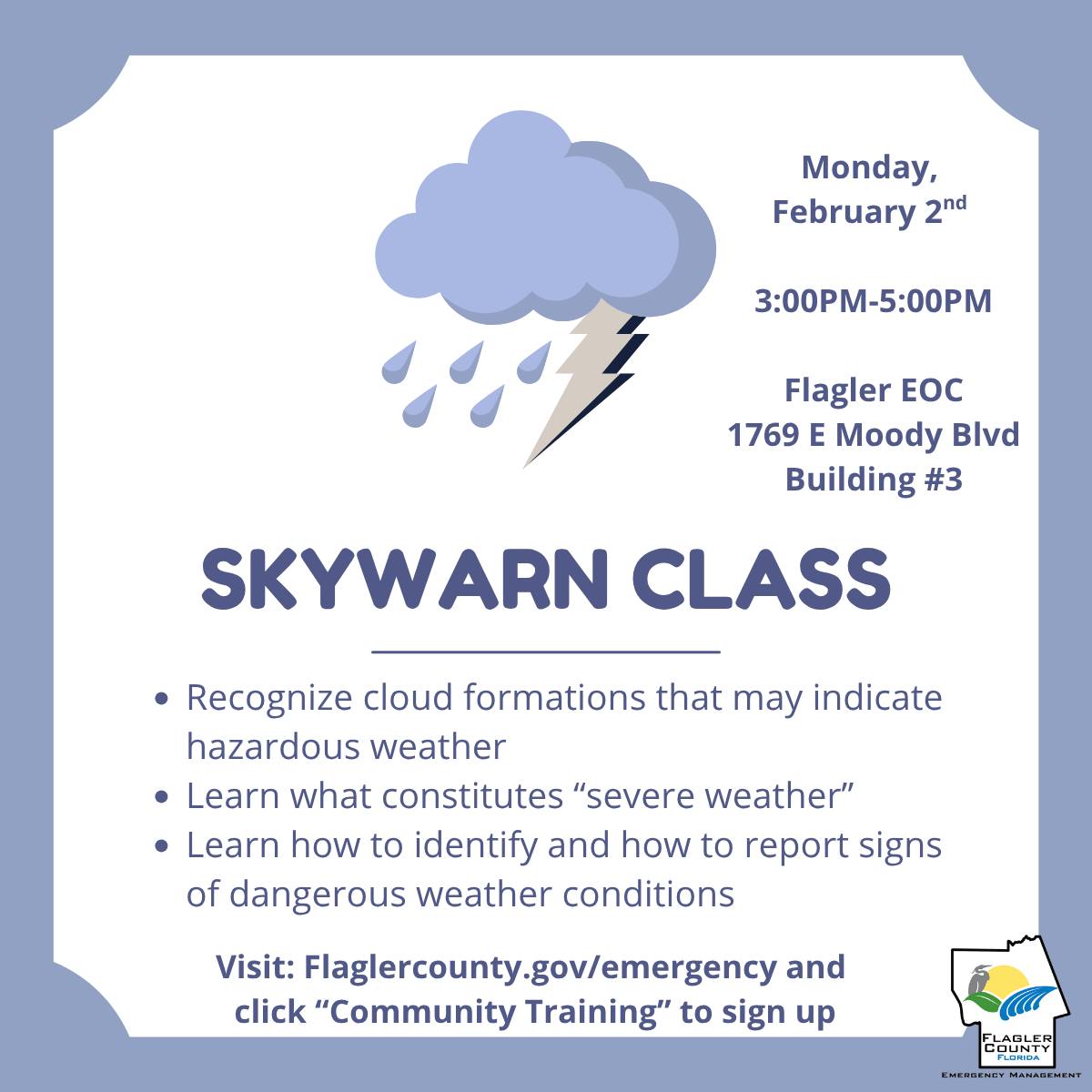 January 5, 2026 – Flagler County Emergency Management will host the National Weather Service’s free Skywarn Storm Spotter class at 3 p.m. on Monday, February 2, at the county’s Emergency […]