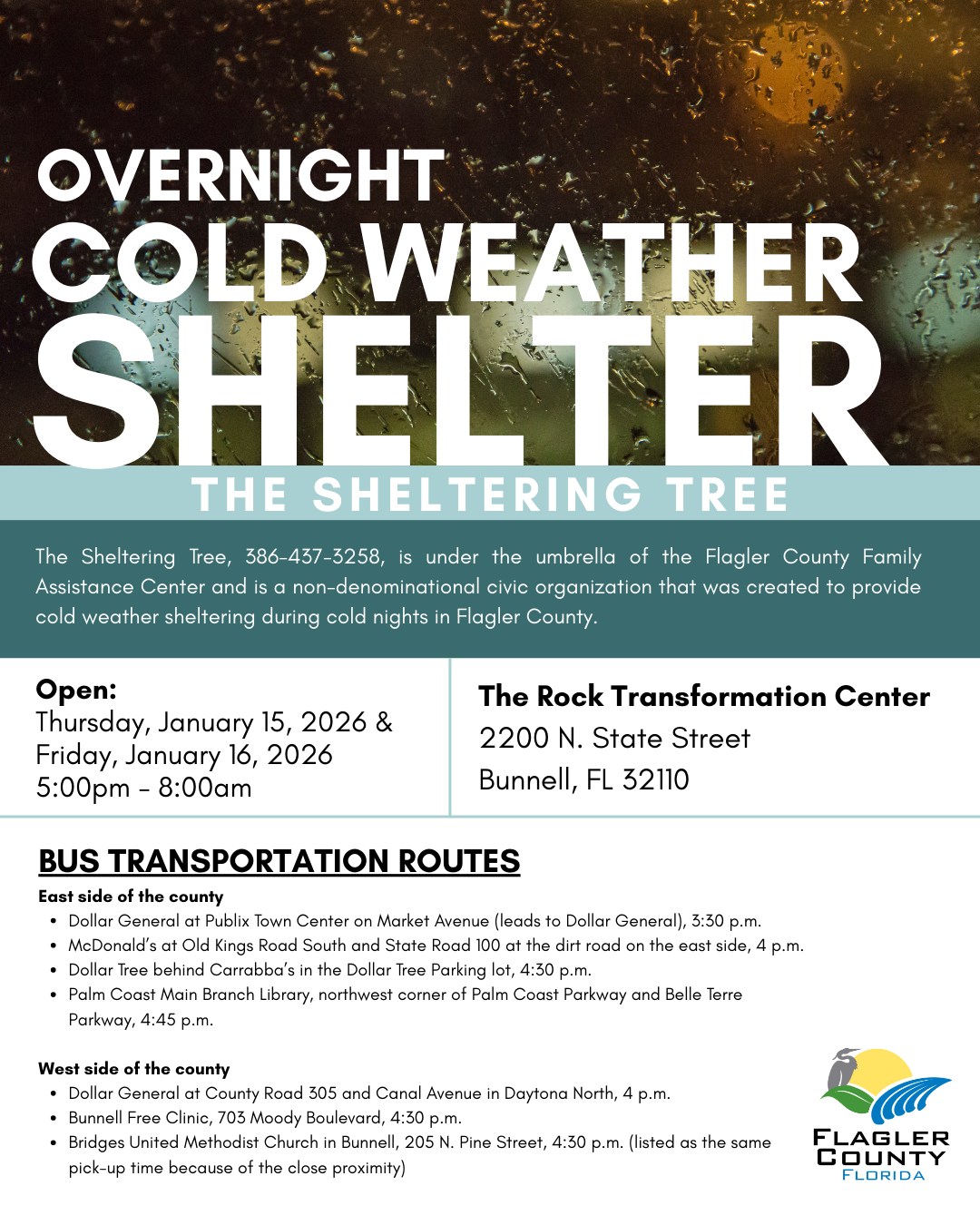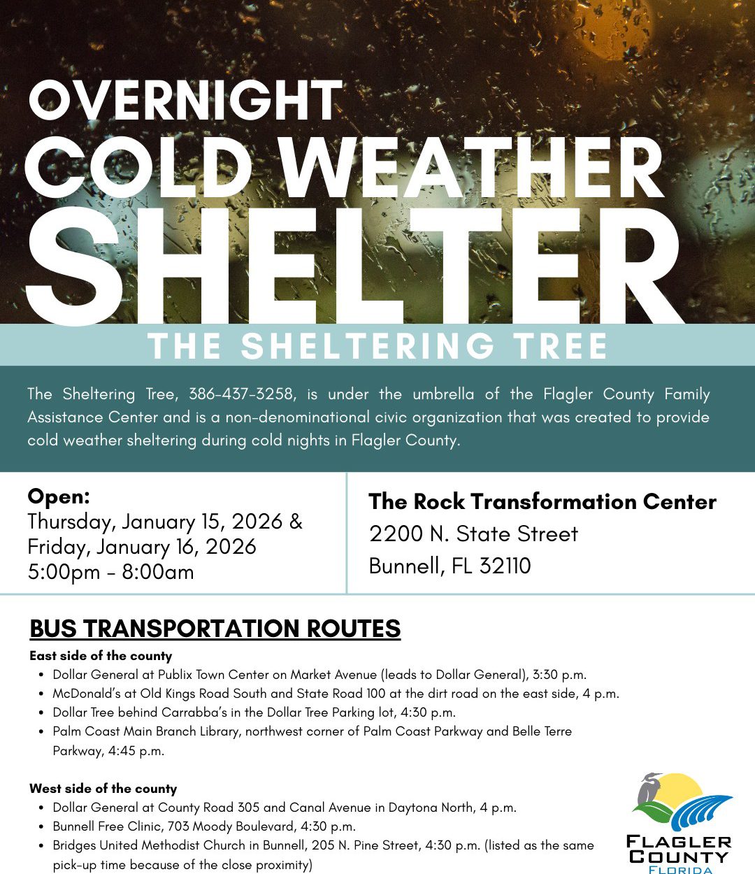 Cold Weather Shelter to Open Thursday, Friday as Cold Temperatures Return to Flagler