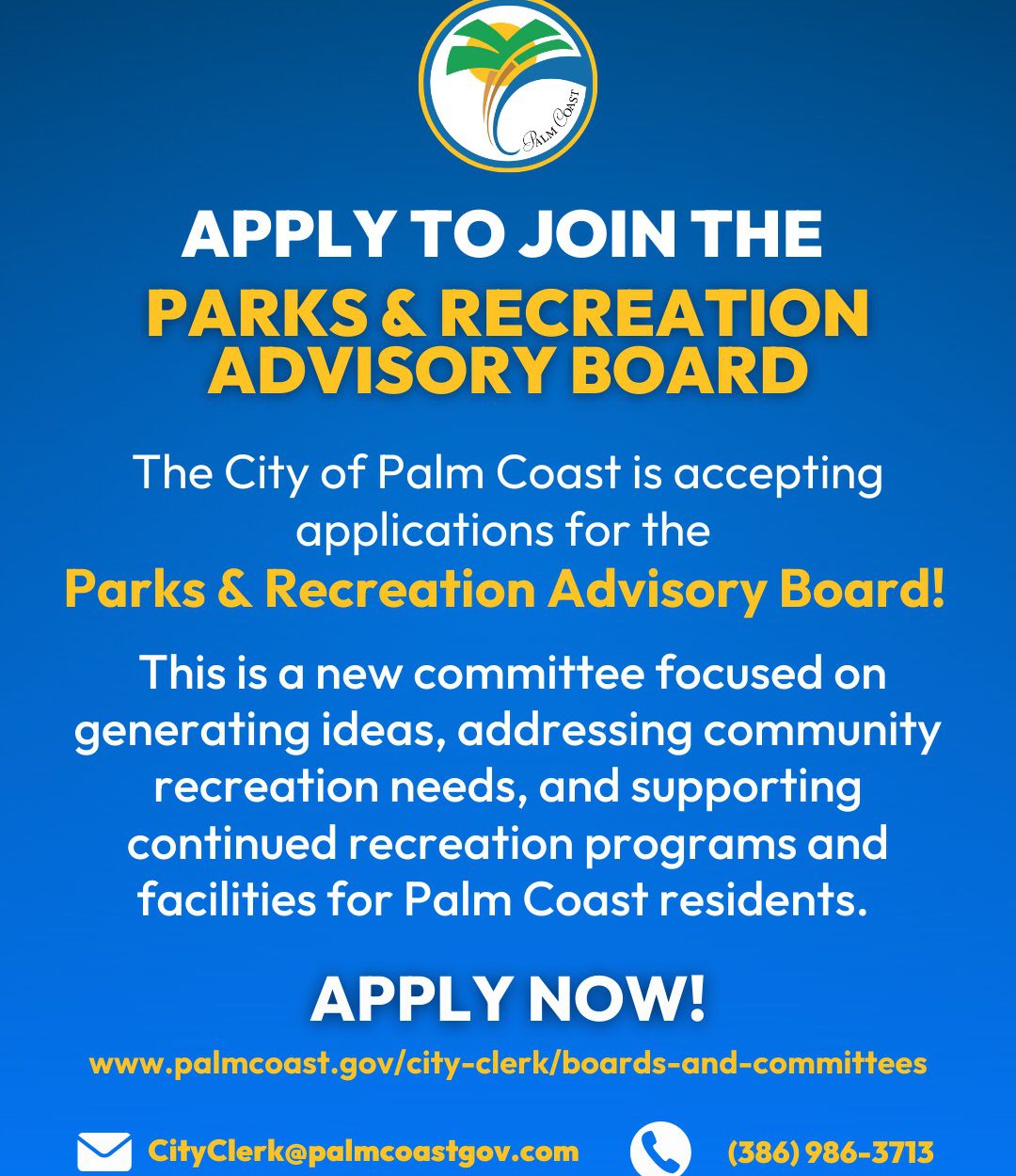 City of Palm Coast Accepting Applications for New Parks & Recreation Advisory Board