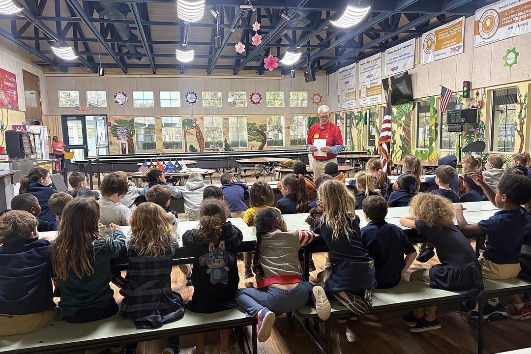 Jeff Kingdon, chairman of the Flagler County Veterans Advisory Council, and other local veterans participated in the assembly as part of the students’ Valentines for Veterans service learning project.