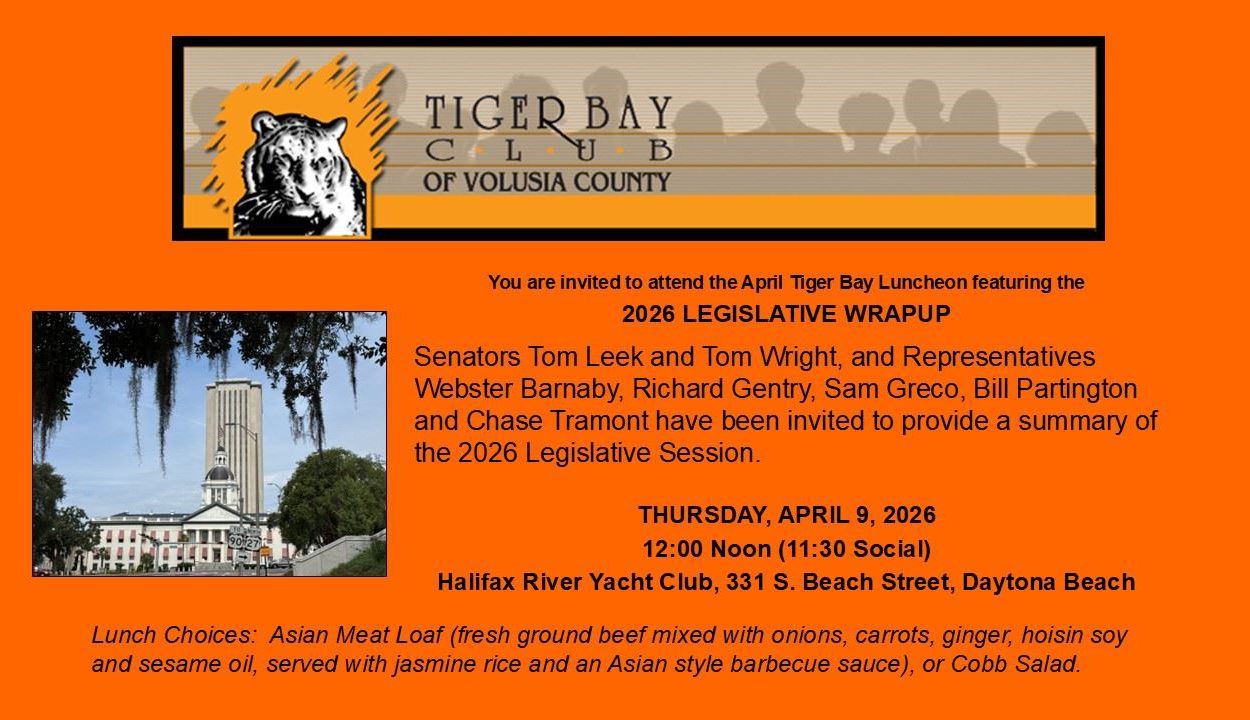 Posted in Flagler News Weekly Volusia Tiger Bay Club to Host Legislative Wrap Up April 9 March 23, 2026 REGISTER NOW