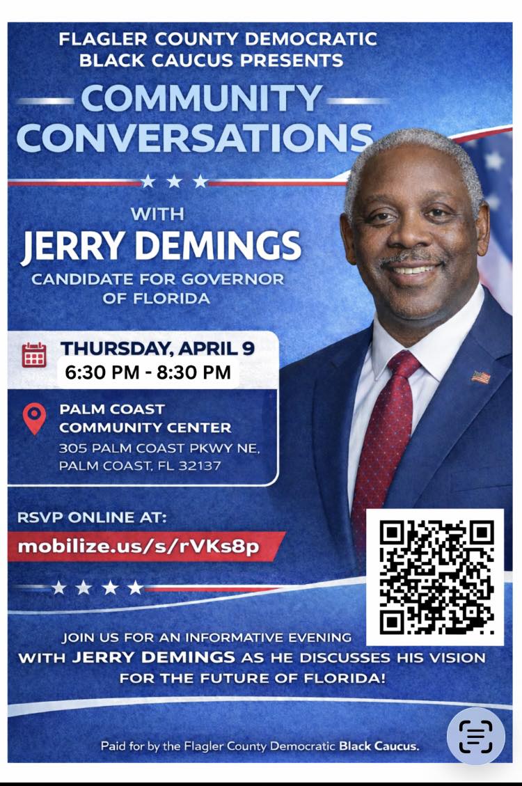 The Flagler County Democratic Black Caucus is proud to present Community Conversations with Jerry Demings, a candidate for Governor of Florida. This is a great opportunity to hear directly from […]