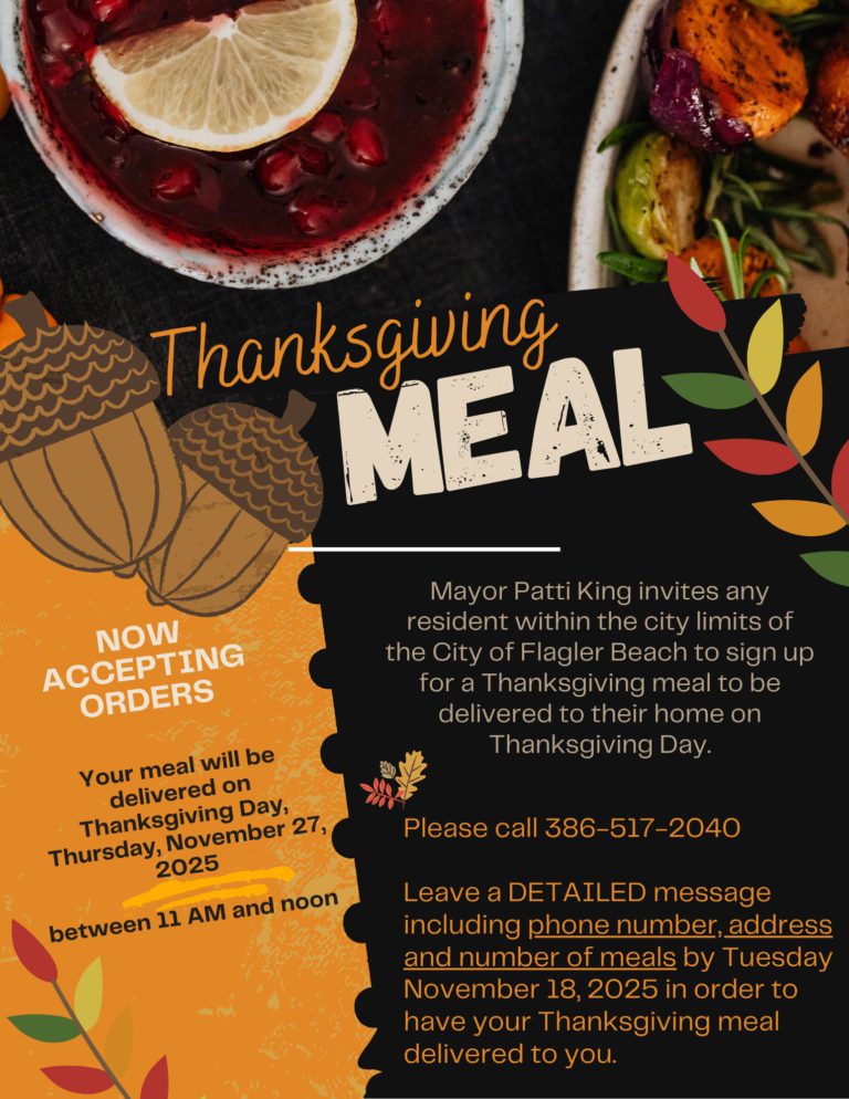 Flagler Beach, Fla. – Flagler Beach Mayor Patti King is making sure no one goes without a meal this Thanksgiving. Any resident living within the city limits is invited to…