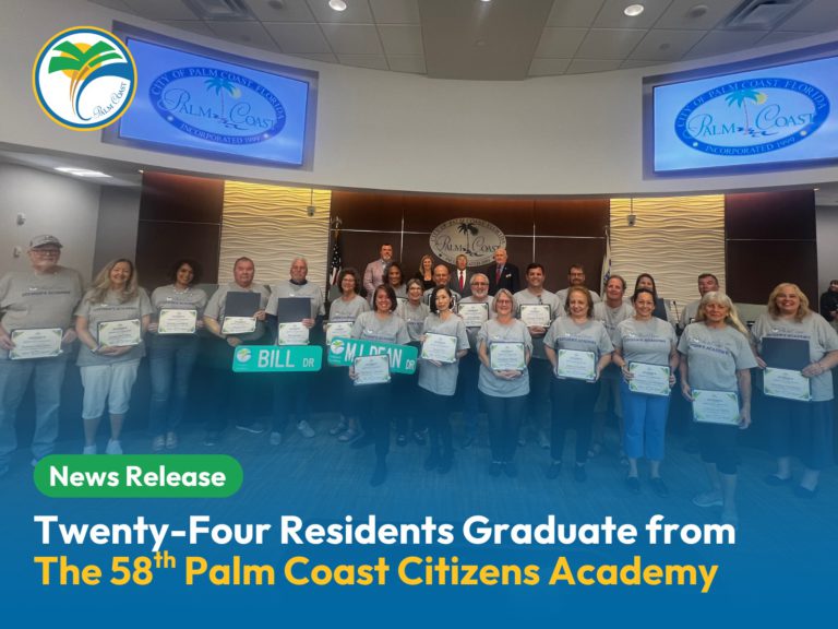 Palm Coast – Twenty-four residents of Palm Coast celebrated their graduation from the 58th session of the Palm Coast Citizens Academy during the City Council meeting on Tuesday, November 4, 2025. The…