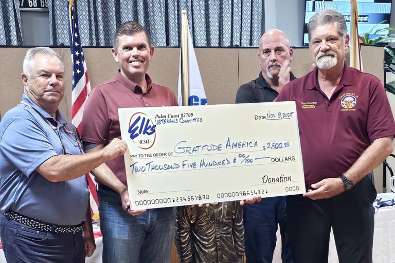 Palm Coast Elks Lodge Veterans Committee donates $2,500 to Gratitude America