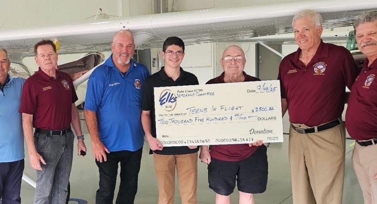 Palm Coast Elks Lodge veteran committee presents donation to Teens-In-Flight