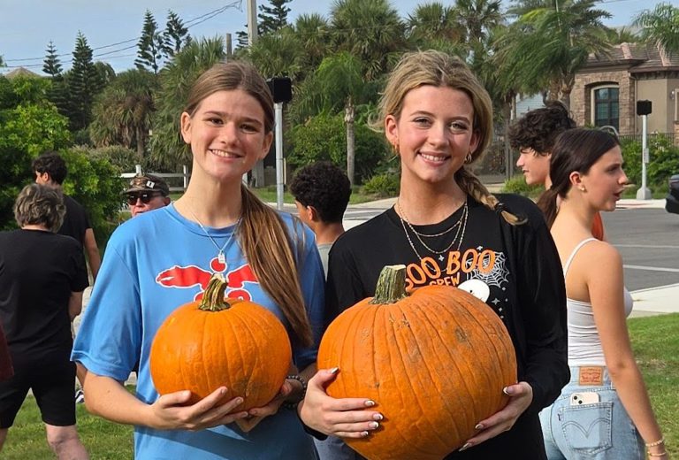 Students help unload over 700 pumpkins at Grace Lutheran Church in Ormond Beach